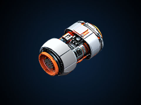 A dual ring-type particle accelerator encasing a reaction chamber where particles of radioactive waste from a ship's power system are collided to produce antimatter and channel the subsequent explosion as propulsion. Used to upgrade a Plasma Thruster into an Antimatter Thruster.