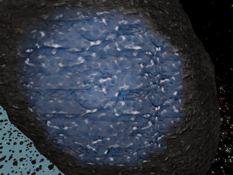 Can be harvested from asteroids and some other places as a temperature-stabilized resource. Can be melted into water.